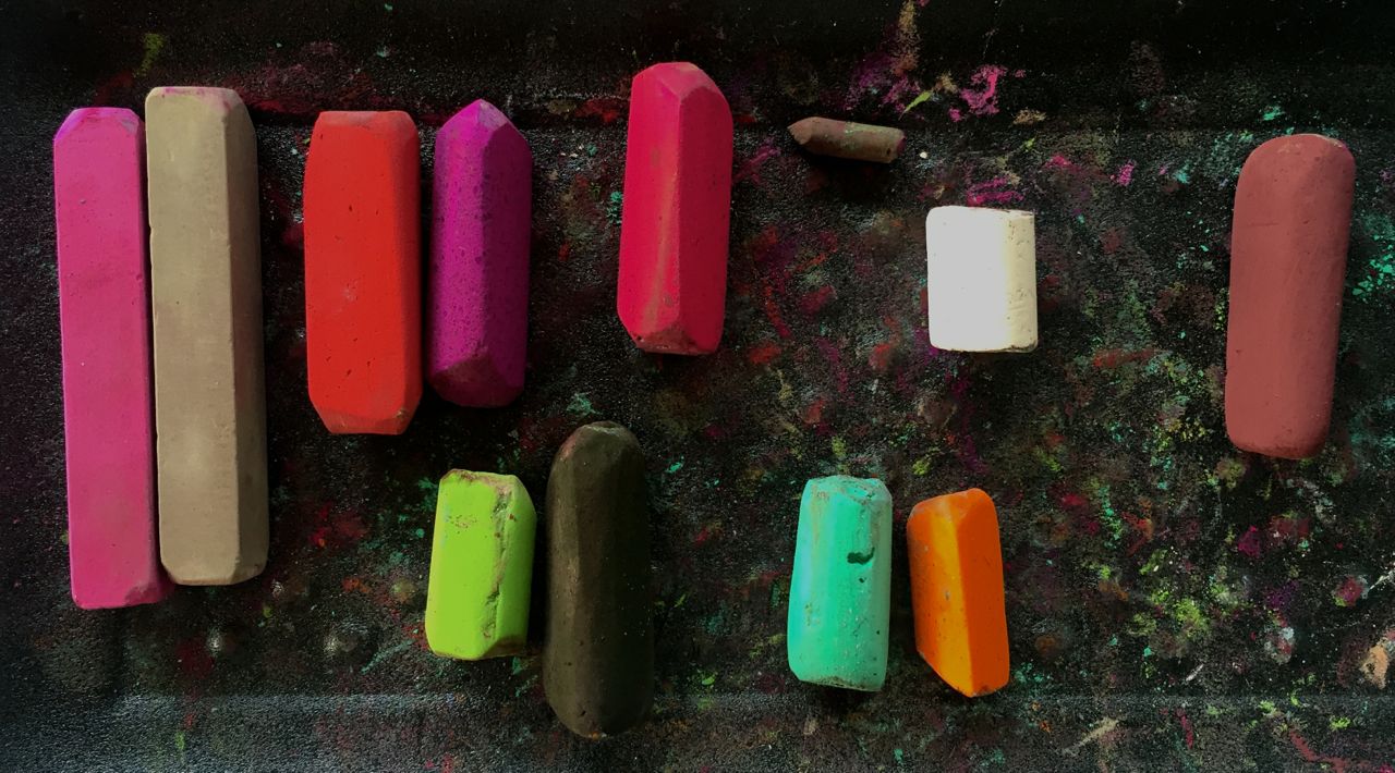 That’s it! At least for now. And here are the pastels I actually ended up using. The pastels on the left are the ones I used most of all followed by the turquoise and orange. I almost didn’t use the very light colour (maybe a yet will!) and I didn’t like the warm brown that I used right at the beginning. So really, I used nine pastels including the two Holbein.