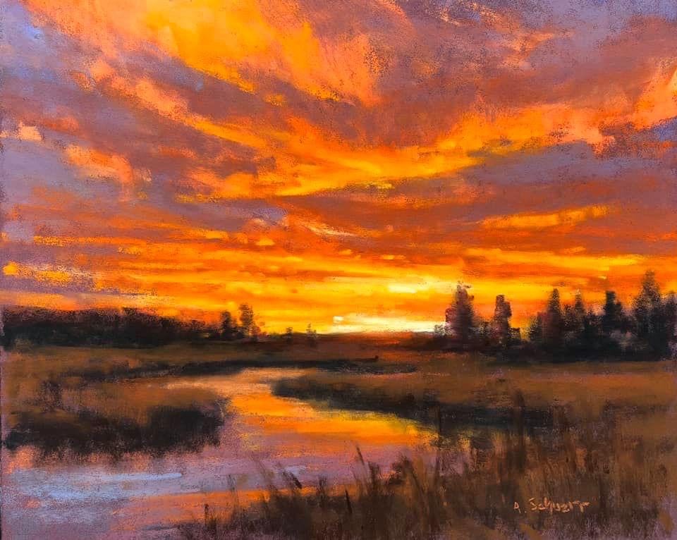 From remote villages in Morocco to the high mountains of Montana, Aaron Schuerr has ranged far and wide to satisfy his artistic wanderlust. He has embarked on solo painting treks across the Grand Canyon and deep into the wilderness of his home state of Montana. In 2020 he was a guest on The Kelly Clarkson Show, interviewed about his plein air paintings. His work has been featured in publications as diverse as The Times of London, Bored Panda, My Modern Met, Southwest Art, and Plein Air Magazine. Schuerr is a frequent contributing writer to The Pastel Journal and The Artist Magazine and has penned a cover article for Plein Air Magazine. He just returned from the 2022 Plein Air Convention where he won “Best Pastel” for this year’s Plein Air Salon. (See his winning painting at the end!) You can see more of his work here.