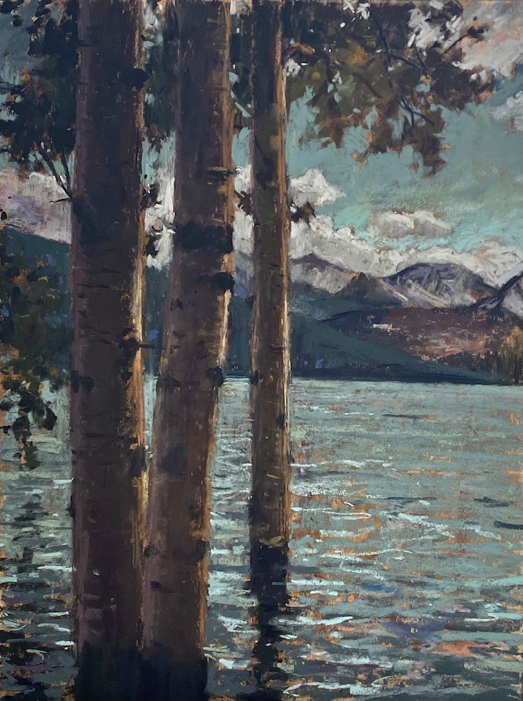 Once I begin a pastel, having practiced for many years, I feel I enter a zone that’s somehow protected from my environment. I become laser focused and I could very well be in the middle of an airport or a field – the concentration and decision-making is the same. I love to lose myself in the work, no matter where I am.