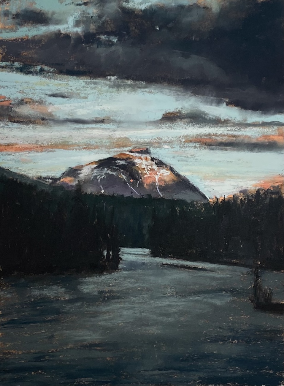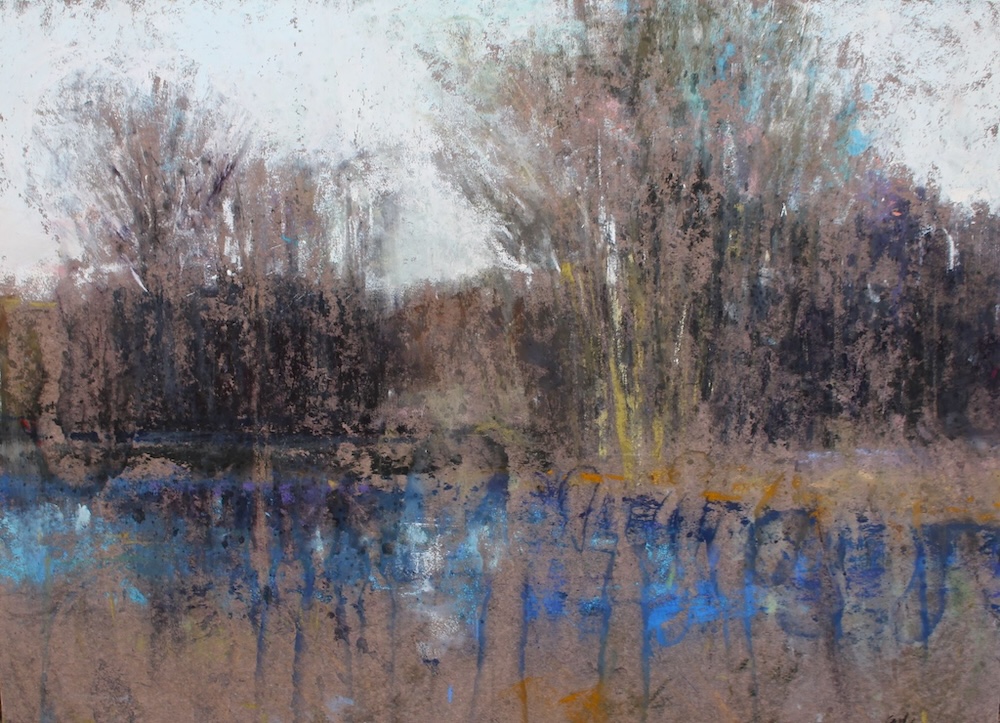 My pastel landscapes begin with a light charcoal drawing, limning the essence of the landscape. Subsequent layering and erasing of pastel bring colour and life and offer suggestions for further exploration. Experimentation ensues by “underpainting” with pastel and then sealing the loosely blocked in pastel shapes with isopropyl alcohol and a brush.