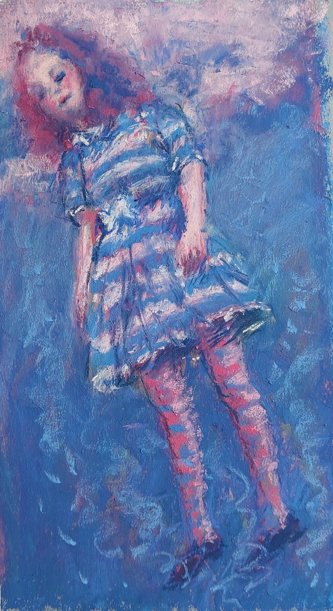 Nicolette van Dam, A. Alice, 1 October 2023, Schmincke pastels on Canson Mi-Teintes Touch, 7 ¾ x 6 ½ in. In her dreams, Alice is floating in the air. How convenient for me that the heroine’s name begins with the first letter of the alphabet.