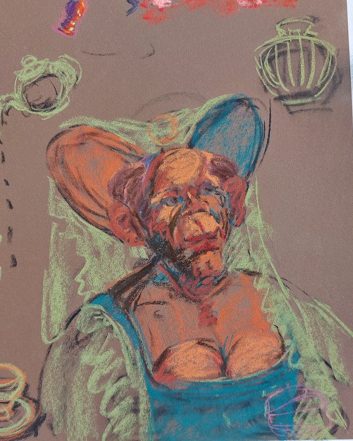 Nicolette van Dam, Q. Quinten Matsijs, 17 October 2023, Schmincke pastels on Canson Mi-Teintes Touch, 7 ¾ x 7 ½ in. Quinten Matsijs was a Flemish artist who painted an intriguing portrait that is known as : The Ugly Duchess, around 1513. It is believed that this portrait influenced Sir John Tenniel’s illustration of the Duchess in Alice in Wonderland, in 1869.