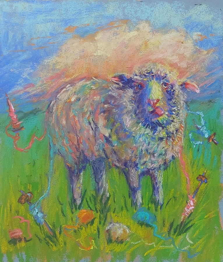 Nicolette van Dam, Y. Yarn, 25 October 2023, Schmincke pastels on Canson Mi-Teintes Touch, 9 x 7 3/4 in. Spinning a long and colourful Yarn is what Lewis Carroll did when he invented his Alice stories.