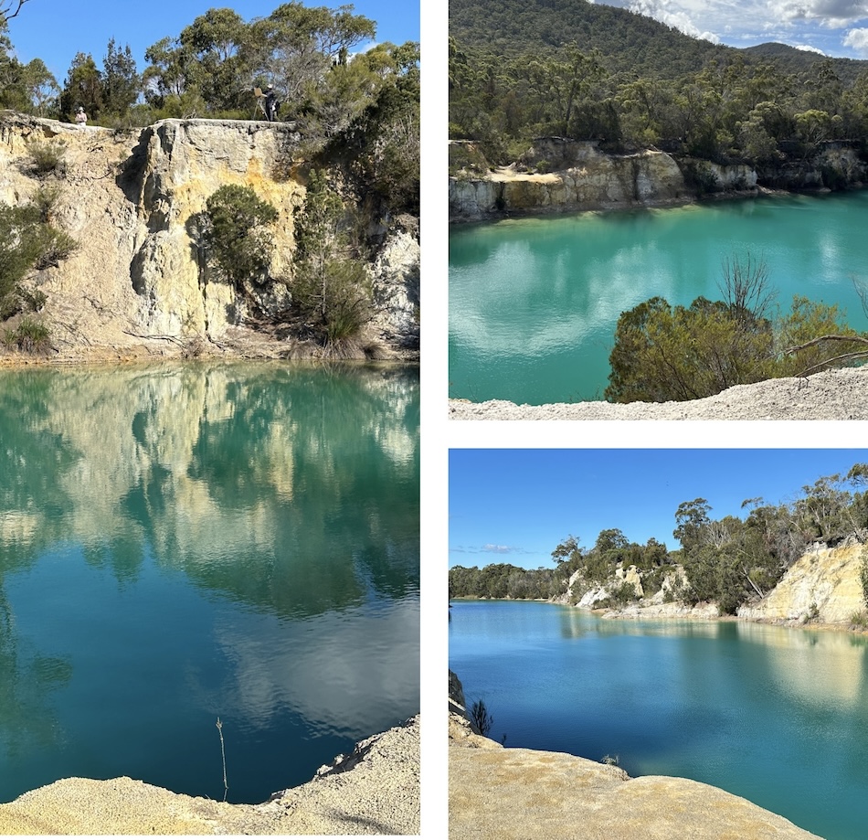 Other stunning locations we visited were Little Blue Lake (that colour!!) and Binalong Bay with its red-lined rocks washed by the ocean waves. (We were almost blown away at Binalong Bay – that sounds like a song doesn’t it – Blown Away at Binalong Bay)