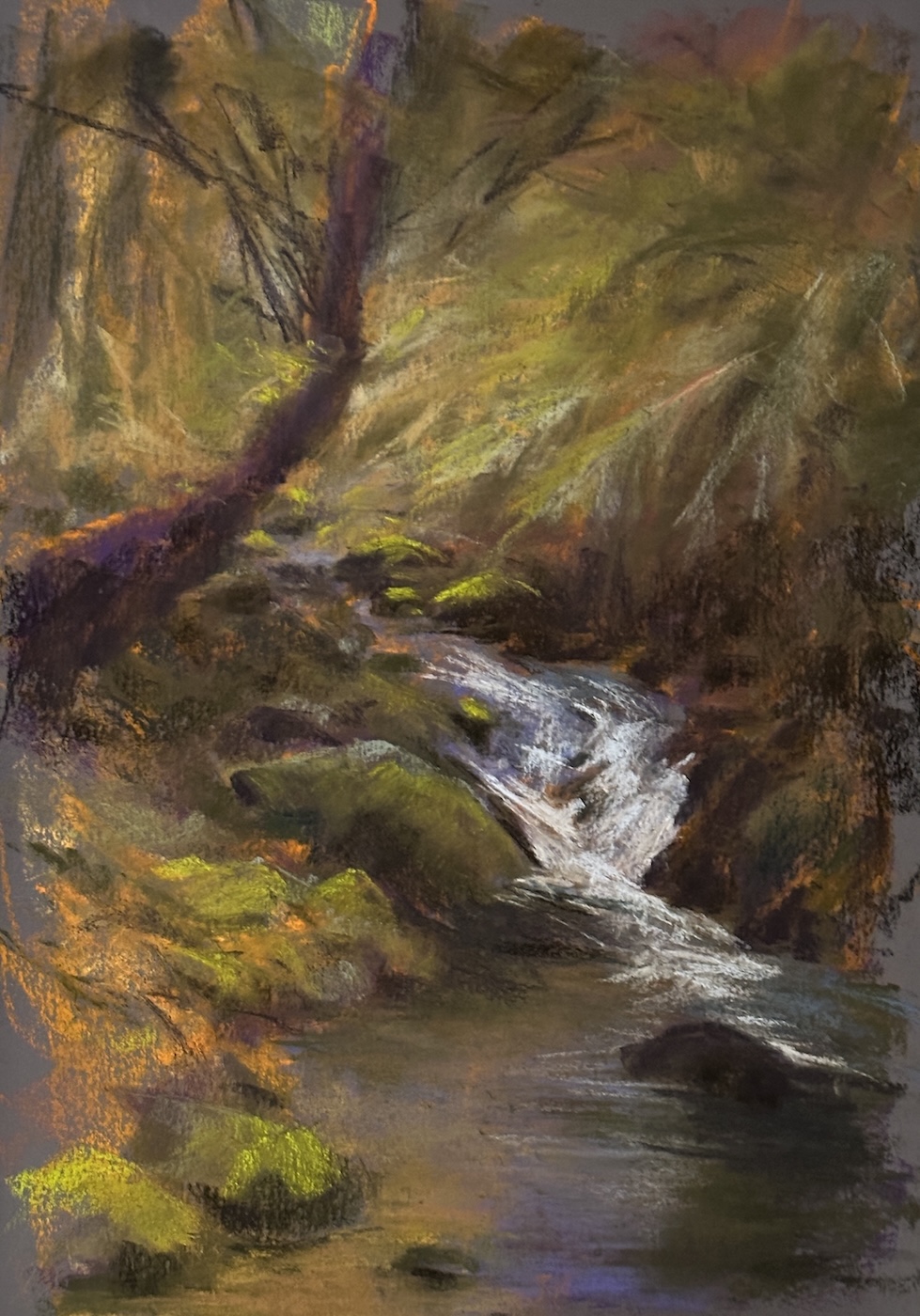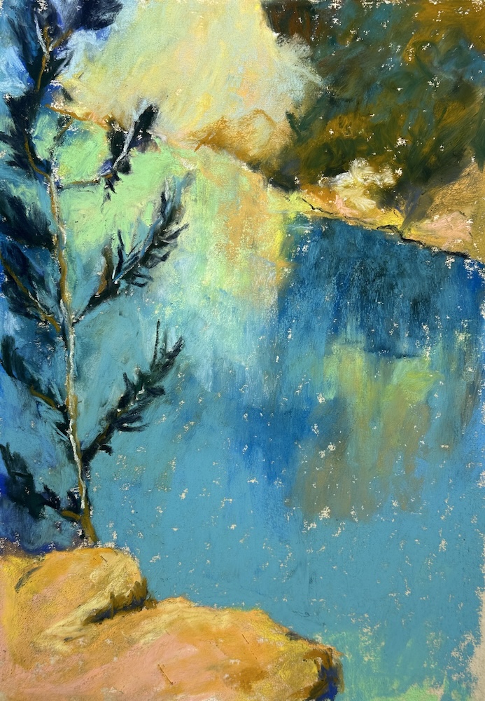 Then there were the results of their efforts – yet more inspiration! What I enjoyed was their amazement at what they’d created, paintings that regularly took them away from their usual way of working (and thinking!). So often their work inspired me because they gave me a different way of looking at a subject, a different way of applying pastel, a different combination of colours. Seriously, I was blown away by the fabulous work they produced in response to their learnings and the beauty of this place.