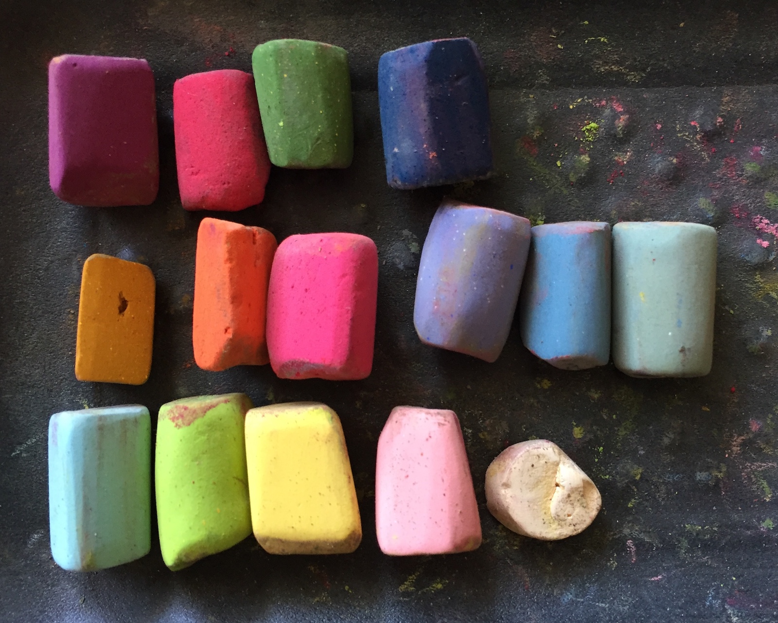 And here are the pastels I used. Mostly Unison pastels but I think that bright pink in the middle is a Mount Vision pastel! The first three pastels in a vertical line to the left are the first three colours applied.