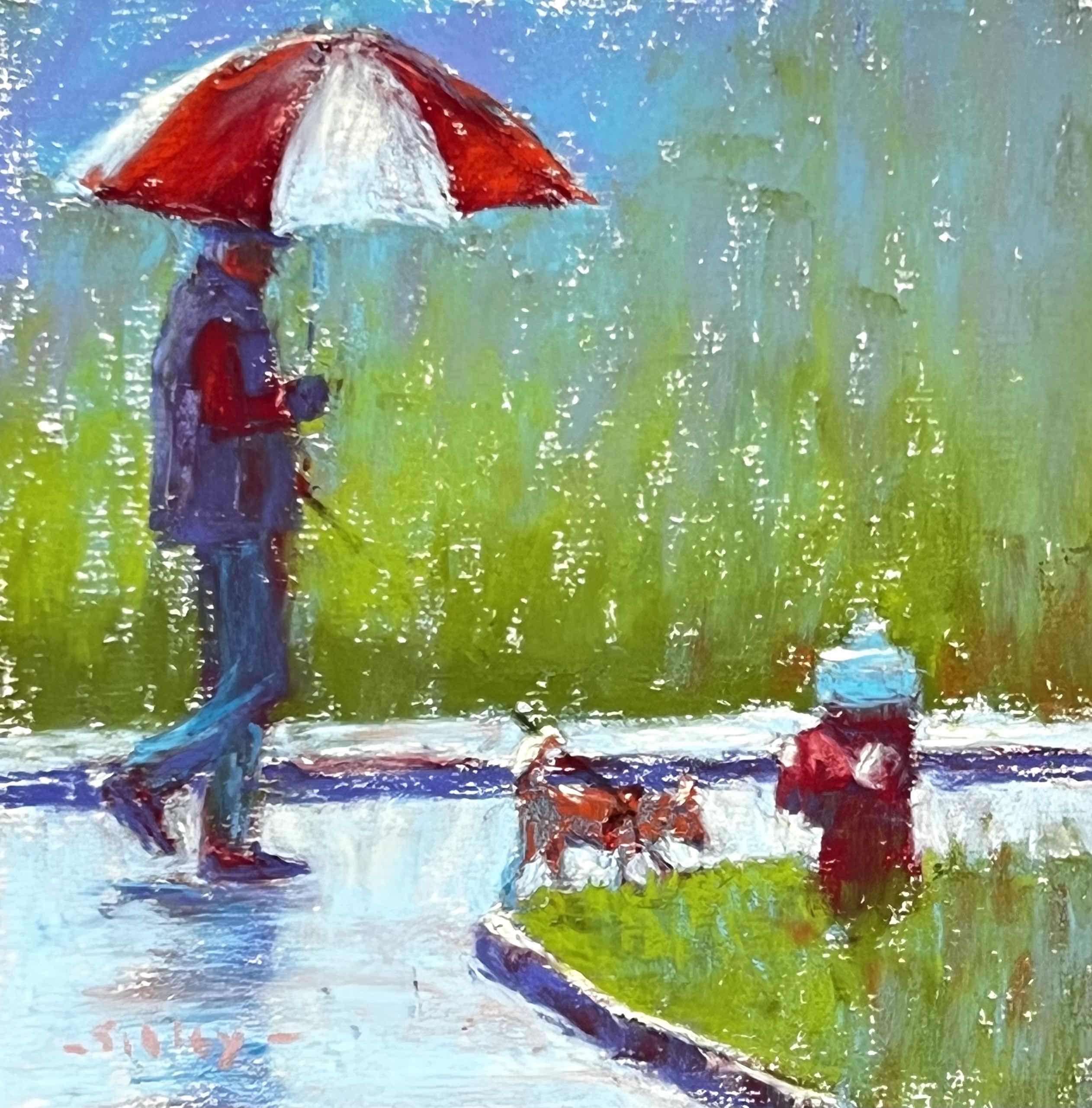 I like working on a series. I’ve been doing Dog Walkers and Gallery Goers for a couple of years now and they are still going strong. Working on a single theme (eg Gallery Goers) helps me know what to get to work on when I have time to do thumbnails. And since I enjoy painting these subjects, the more thumbnails I have in inventory, the better!
