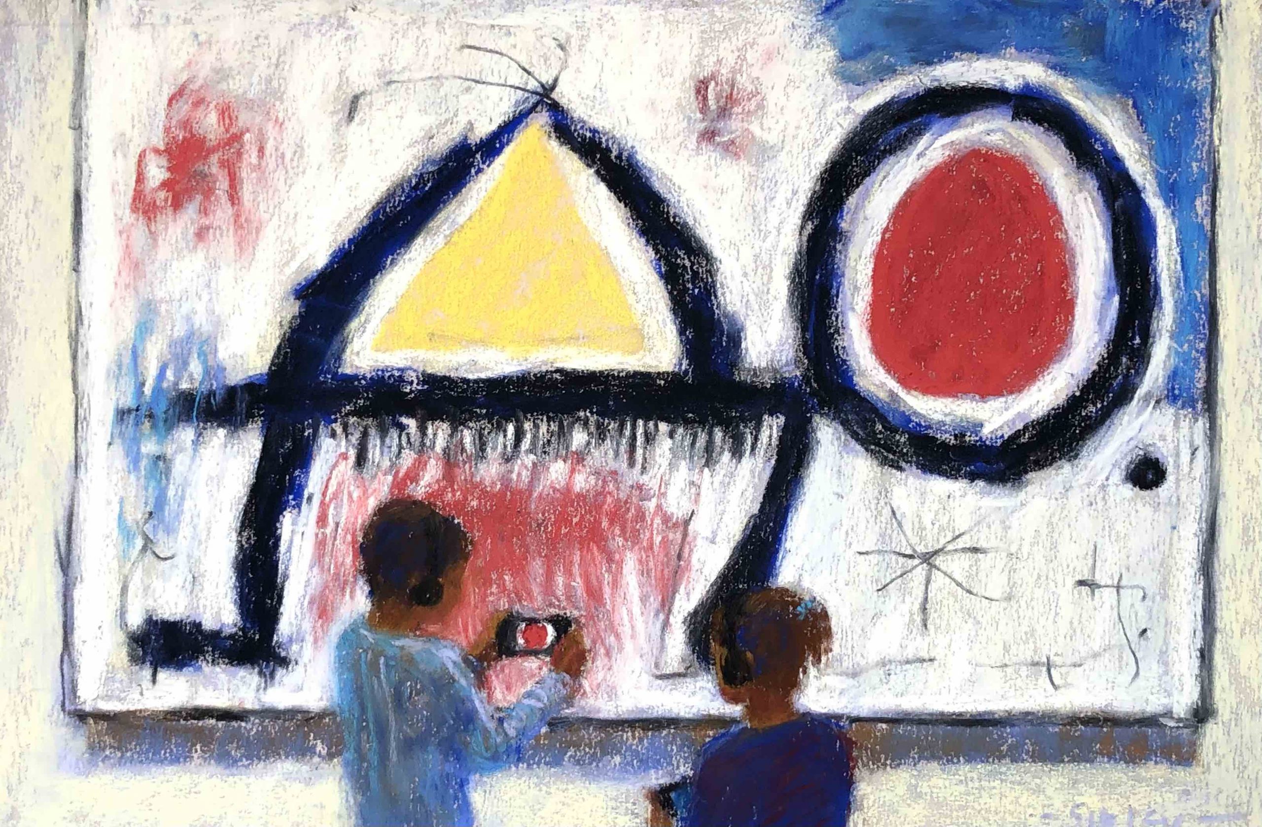 I love seeing your thumbnails, your dog walking and gallery goer series. They are inspiring! I especially love the Miro painting. The man’s face turned for the selfie echoing the figure in the upper right of Miro’s painting is wonderful.