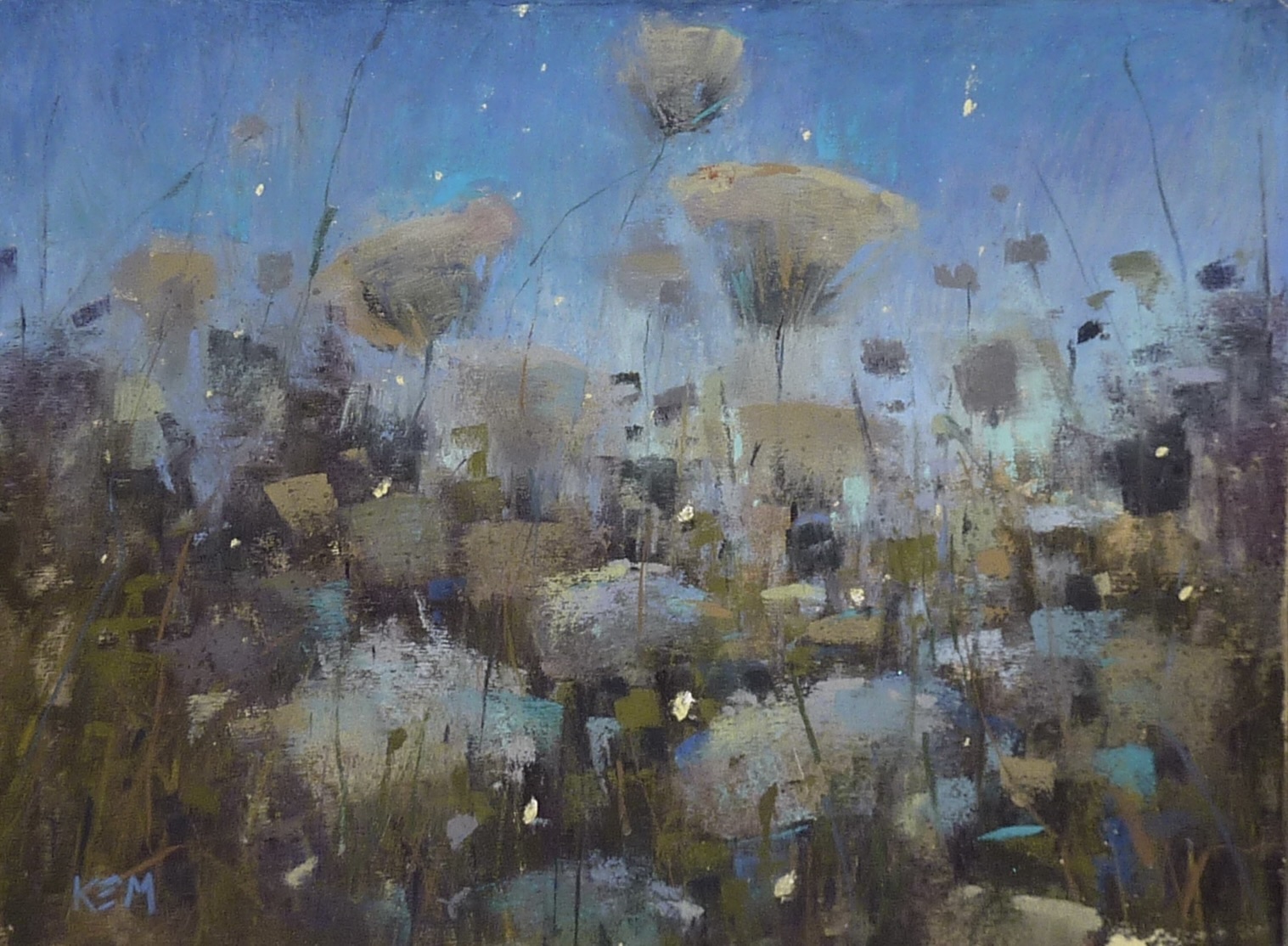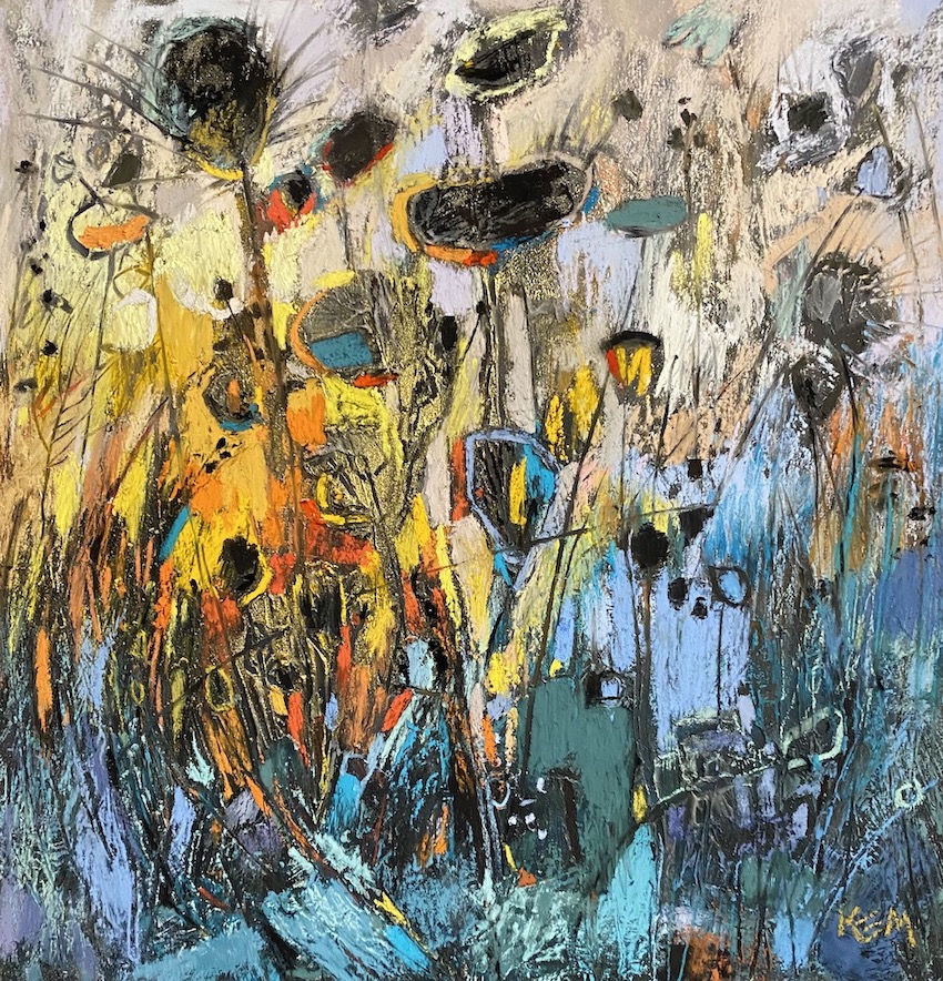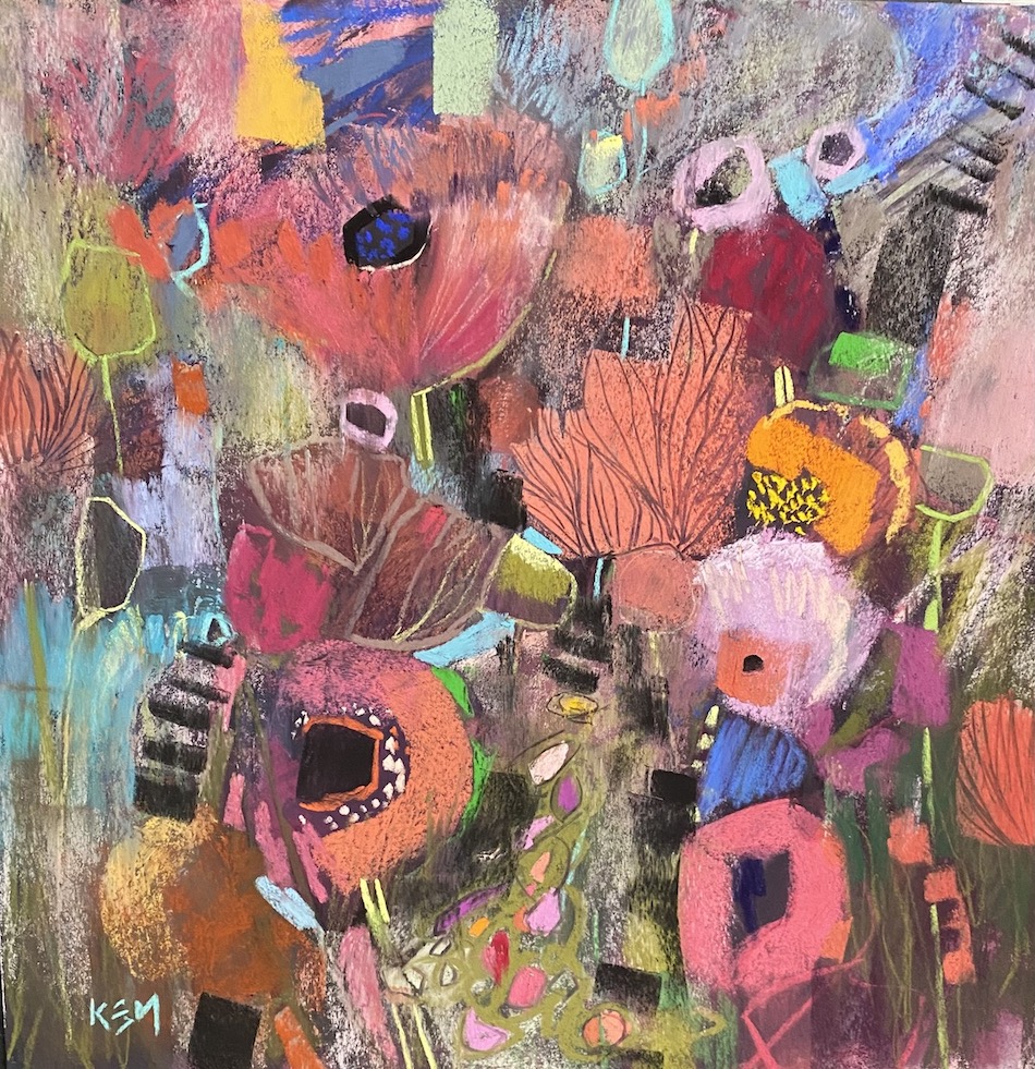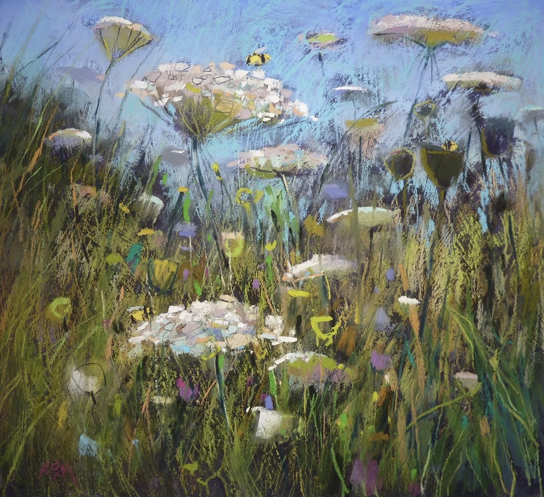 Karen is known for her representational paintings of wildflowers yet it’s clear to see where she’s been headed. Her new work evolves naturally from her more familiar style.