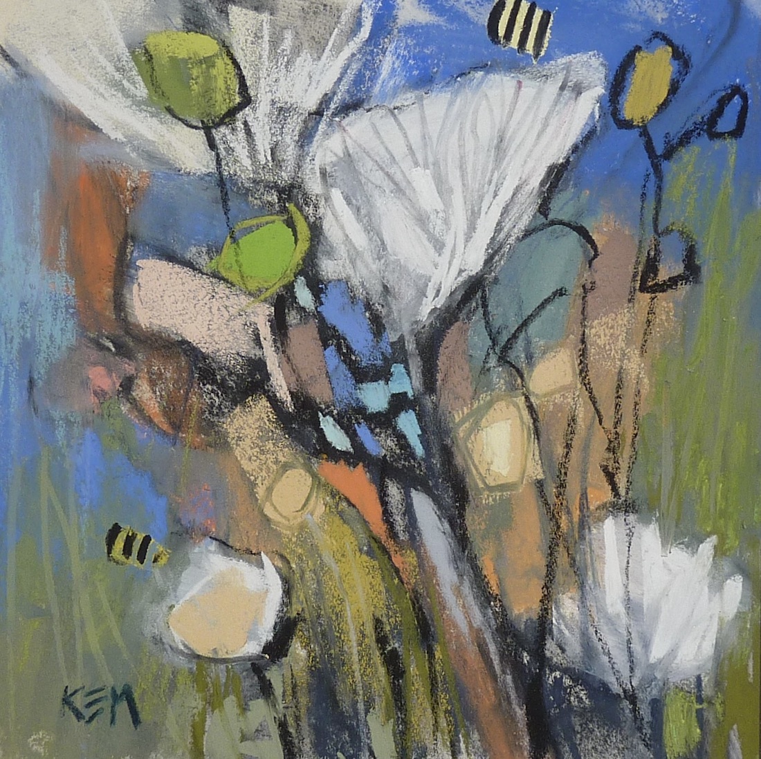 I love Karen’s new abstracted flower paintings. I have learned so much from her through the years such as how to paint grasses and lead the eye around the painting . I have observed her love of sometimes adding bees around her flowers. To now see these bees abstracted brings a HUGE smile to my face!